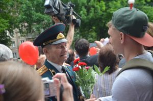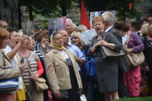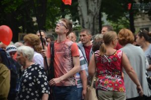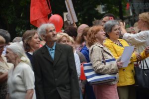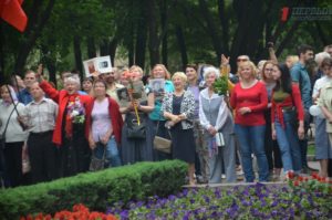 Изначально было заявлено, что в акции примут участие восемь тысяч человек. В колонне маршируют несколько тысяч. Множество людей пожилого возраста собралось на Аллее Боевой Славы. Там же можно увидеть воеенослужащих, ветераноа АТО и Нацгвардейцнв.