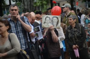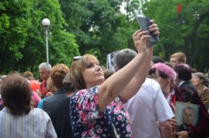 Второй год подряд в Запорожье на 9 мая активисты для того, чтобы помешать организатору шествия Андрею Иванову, используют таблички с изображением героев из различных фильмов и сатирическими подписями на «Бессмертный полк».