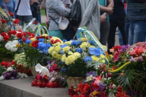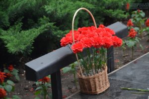 Запрещенных символов у участников митинга нет. Люди спокойно возложили цветы к памятному знаку.