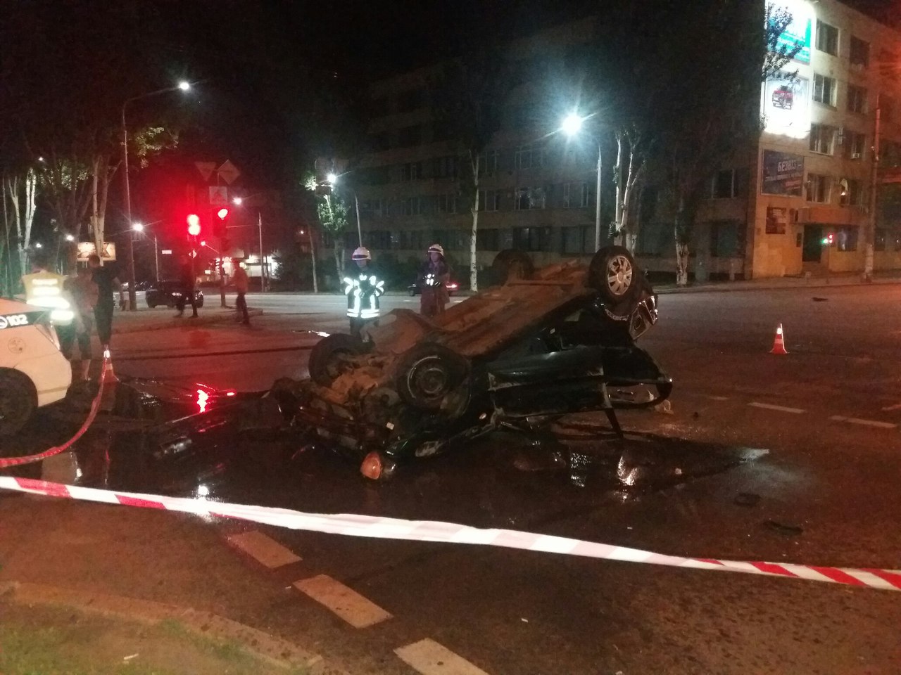 В центре Запорожья произошло серьезное ДТП: водитель не справился с управлением и автомобиль перевернулся - ФОТО