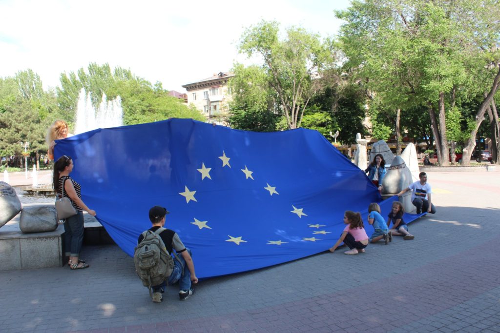 Вчера, 19 мая, на площади Маяковского в Запорожье провели флешмоб ко Дню Европы.