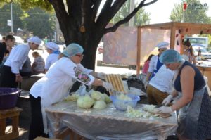 А еще неравнодушные участники собирают вкуснейшую консервацию — квашенную капусту, помидоры, огурцы, болгарский перец и кабачки в помощь бойцам АТО.