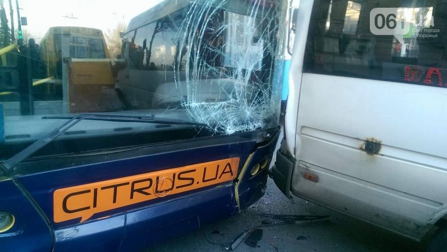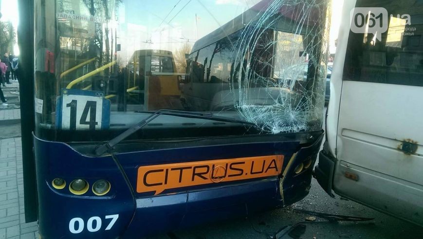В центре Запорожья столкнулись троллейбус, маршрутка и автобус - ФОТО