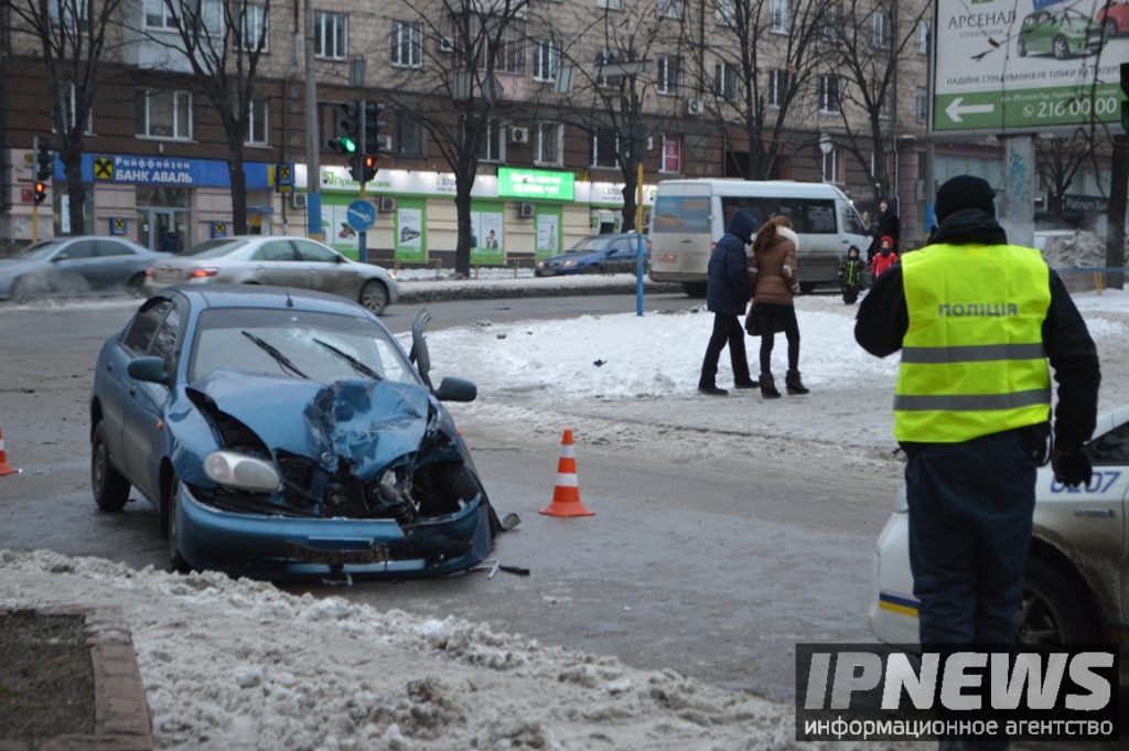 Вчера, 13 февраля, в Запорожье в районе торгового центра «Украина» произошло ДТП: столкнулись два автомобиля.