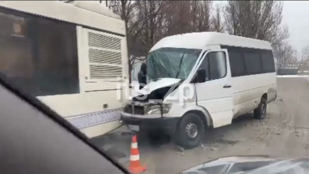 В Запорожье сегодня утром произошла очередная авария с участием маршрутного такси.