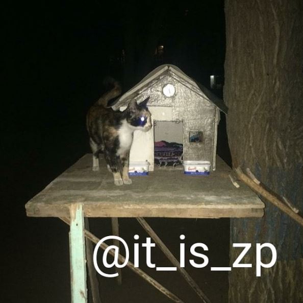 В социальной сети поделились снимком, на котором сфотографирован домик для кошек.