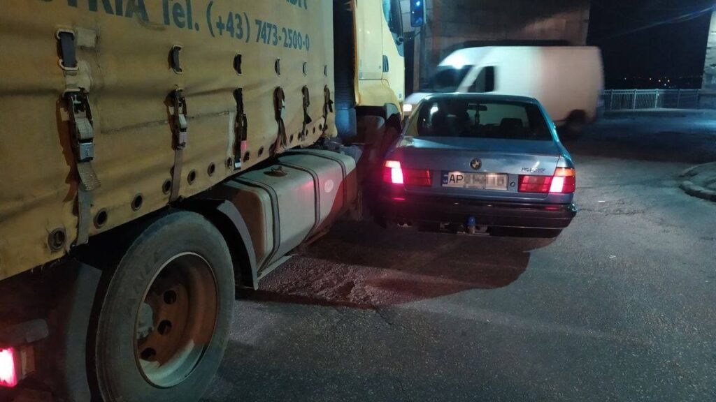 Правоохранители прибыли на вызов и выяснили, что авария произошла между грузовиком RENAULT PREMIUM и BMW 525. Оказалось, что водитель RENAULT нарушил правила дорожного движения, в результате чего произошло ДТП. Легковушка и грузовик получили механические повреждения, травмированных нет. На водителя составили протокол по ст. 124 КУоАП.