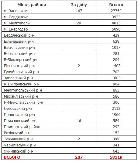 В Запорожской области за сутки зарегистрировали относительно небольшое количество новых больных.
