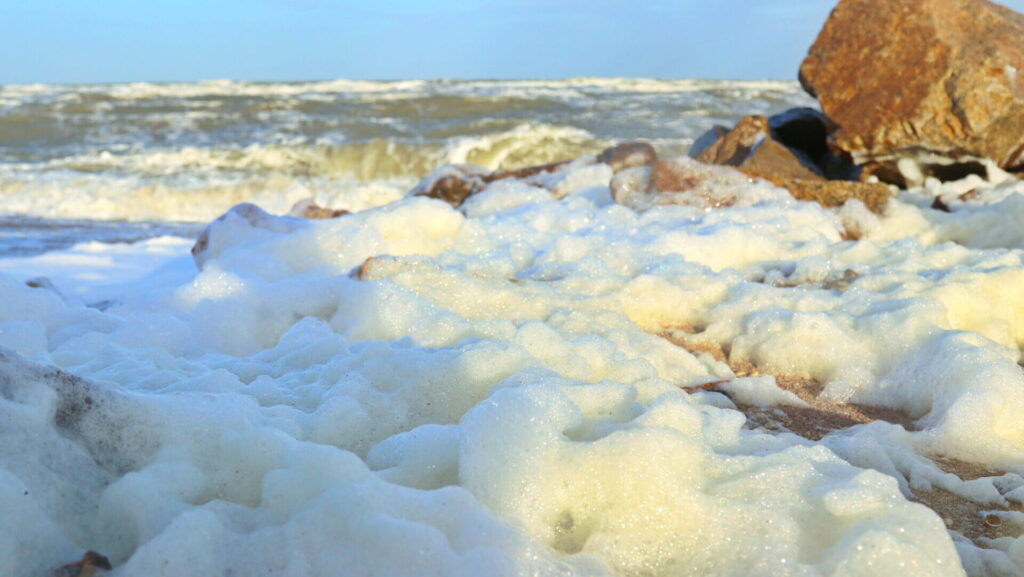 Хроники штормовой погоды засняли в Бердянском заливе. Там ветер разогнал море.