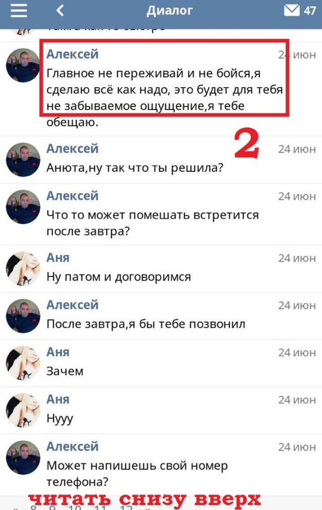 Во время очной встречи вместо милой девочки с мужчиной пришли побеседовать общественные активисты – борцы с педофилией. В ходе встречи Алексей признался, что у него у самого есть 10-летняя дочь, и он убил бы того, кто бы с ней так поступил. Задержанный слезно пообещал больше никогда не вести знакомство с несовершеннолетними детьми.