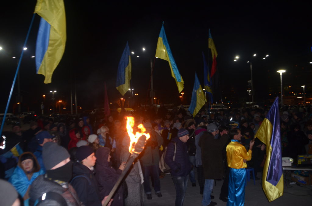 На вечерний митинг у стен ОГА, посвященный третьей годовщине Майдана, собралось несколько сотен горожан. Большая часть из них – непосредственные участники Майдана 2013-2014 года.