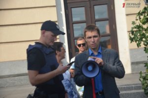 В результате сотрудник полиции разрешил активистам проводить мирный митинг, но быть сдержанными в выражениях и аккуратными с ветвями.