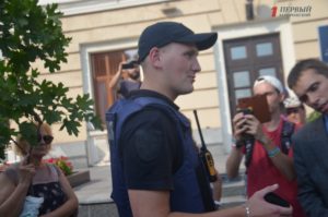 Активистов остановили сотрудники полиции, которые настаивают на том, что нельзя проводить несанкционированный митинг.