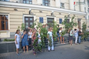 Сегодня, 7 августа, два десятка общественных активистов устроили шествие по центральному проспекту Запорожья, чтобы привлечь внимание жителей к бесцеремонному спилу более 500 деревьев в парке Яланского.