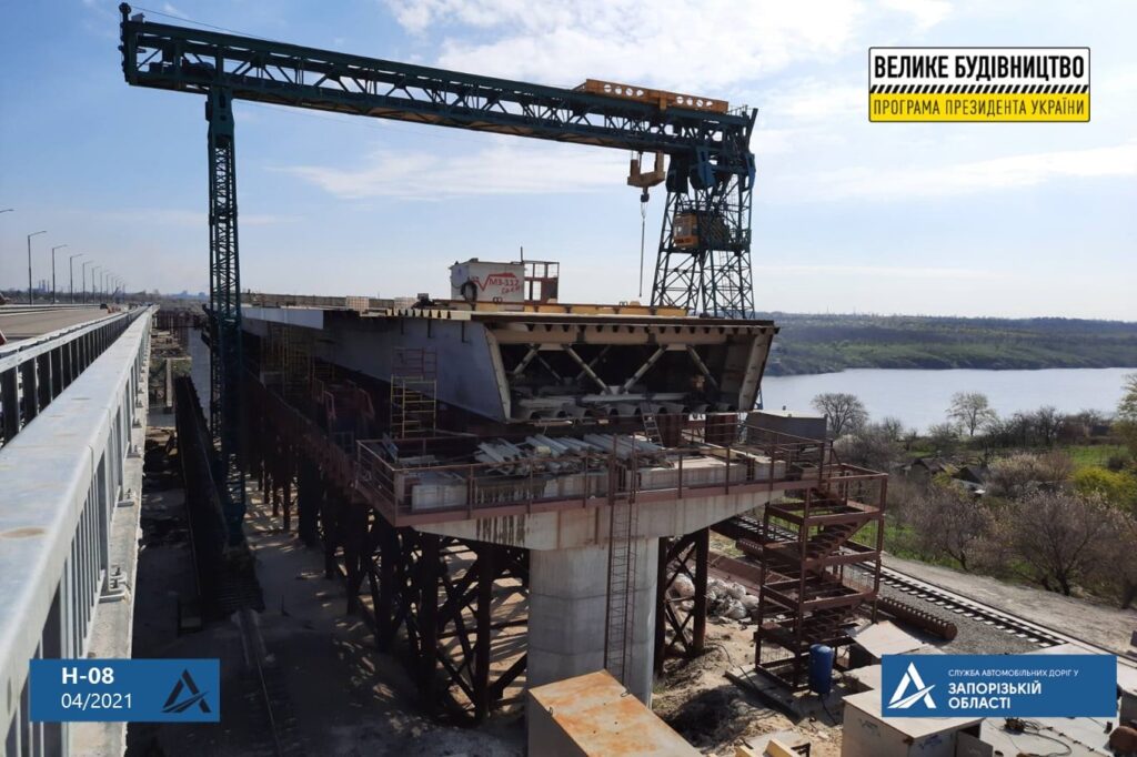 На балочном мосту в Запорожье стартовал очередной этап надвижки металлоконструкций через реку Старый Днепр.