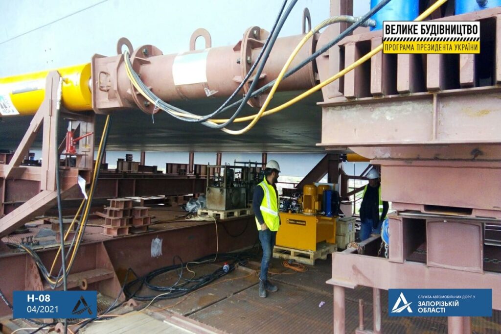Сегодня же продолжается технологический процесс второго этапа надвижки – длиной 96 метров. Уже на этом этапе мостостроители установят часть временной конструкции пролетного строения (аванбек) на капитальное строение № 3, расположенное в русле Старого Днепра.