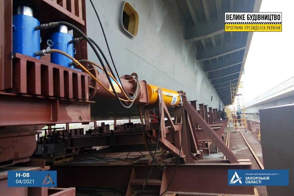 Напомним, что первый этап надвижки секции состоялся 2 апреля во время визита на объект строительства заместителя руководителя Офиса президента Кирилла Тимошенко, председателя Укравтодора Александра Кубракова. Тогда мостостроители «продвинули» секцию на опору на длину 67 метров.