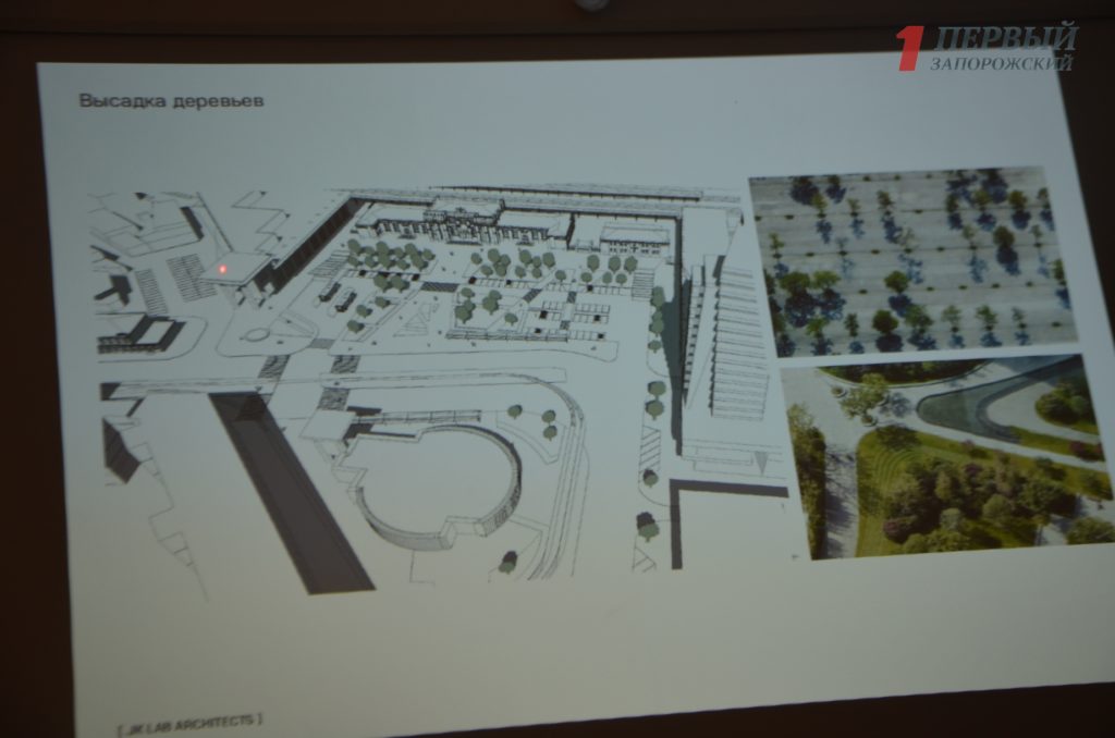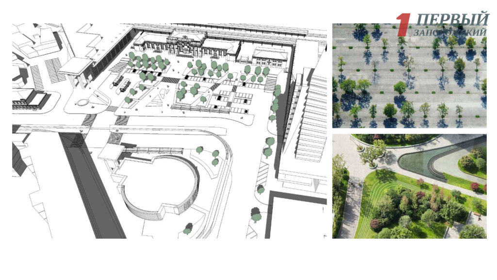 — Мы не используем зеленые насаждения в виде газонов, поскольку требуется ежедневный обильный полив. Сейчас в Европе наблюдается тенденция, когда все отказываются от огромных плоскостей с газоном, поскольку это не устойчивое решение. Сейчас всё сводится к капельному поливу, когда минимизируется затраты. Зеленые зоны они могут быть многолетними, со злаковыми растениями, кустарниками. По краям будут места для сидения и отдыха. Также мы предусмотрели высадку деревьев с приствольными решетками, чтобы там образовалась тень и мы могли разместить скамейки. Здесь запорожцы могут отдохнуть, ожидая прибытия поезда или встречая кого-то, — рассказала докладчик Жанна Кисилева.