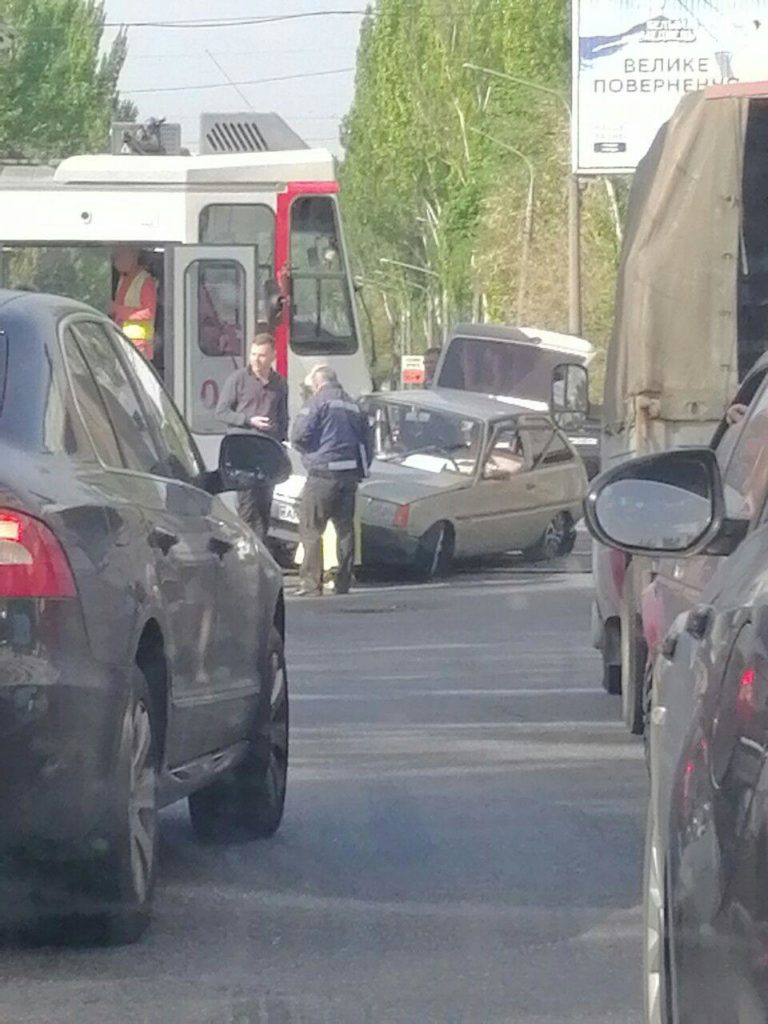 Как оказалось, трамвай №16 (Вокзал «Запорожье-1» Павло-Кичкас) столкнулся с автомобилем ЗАЗ 110207, который в это время проезжал вдоль трамвайных путей.