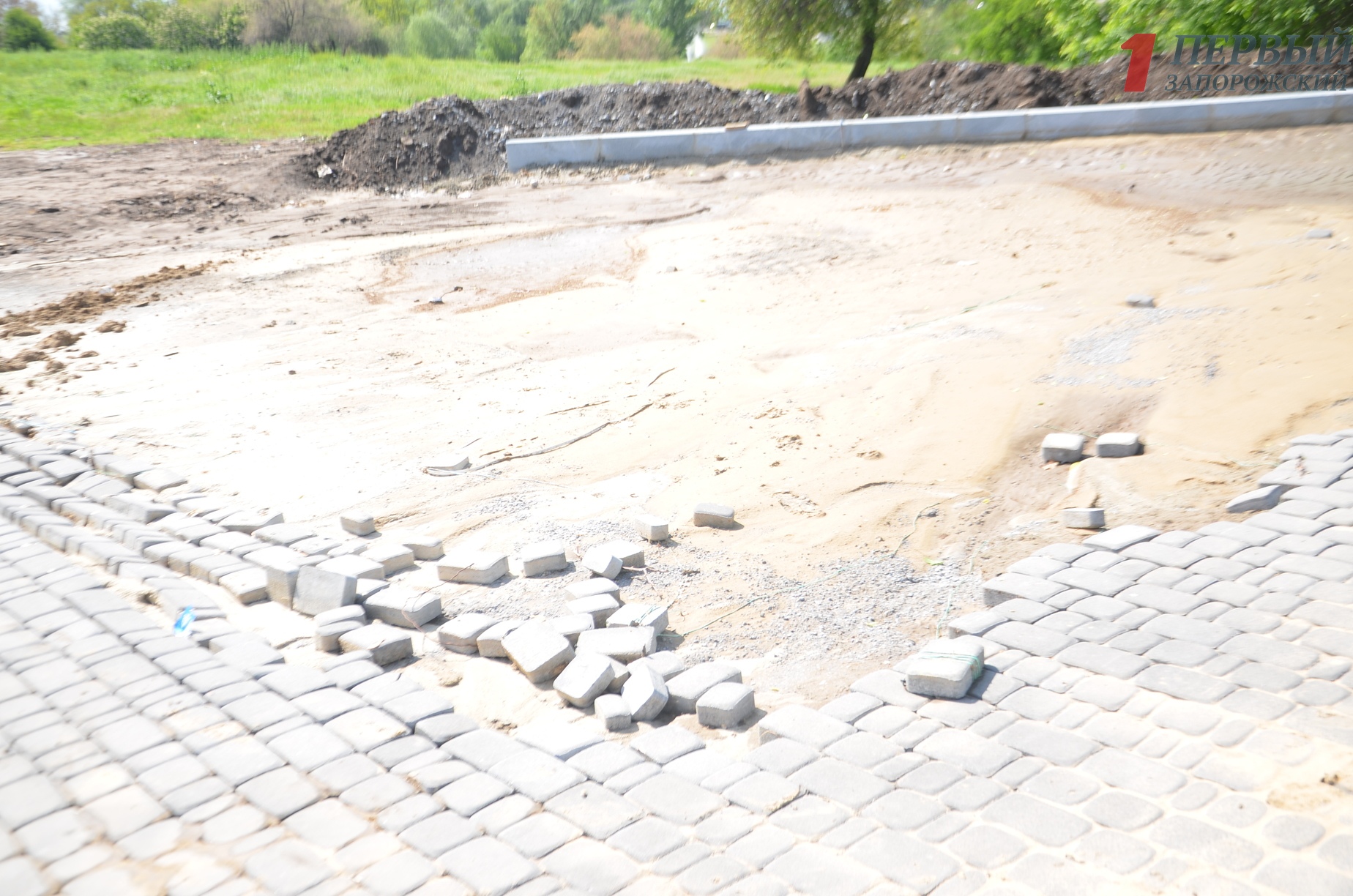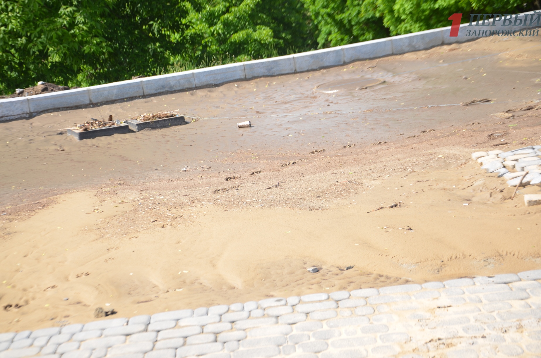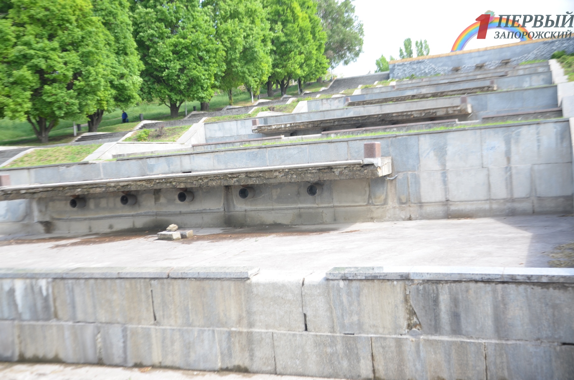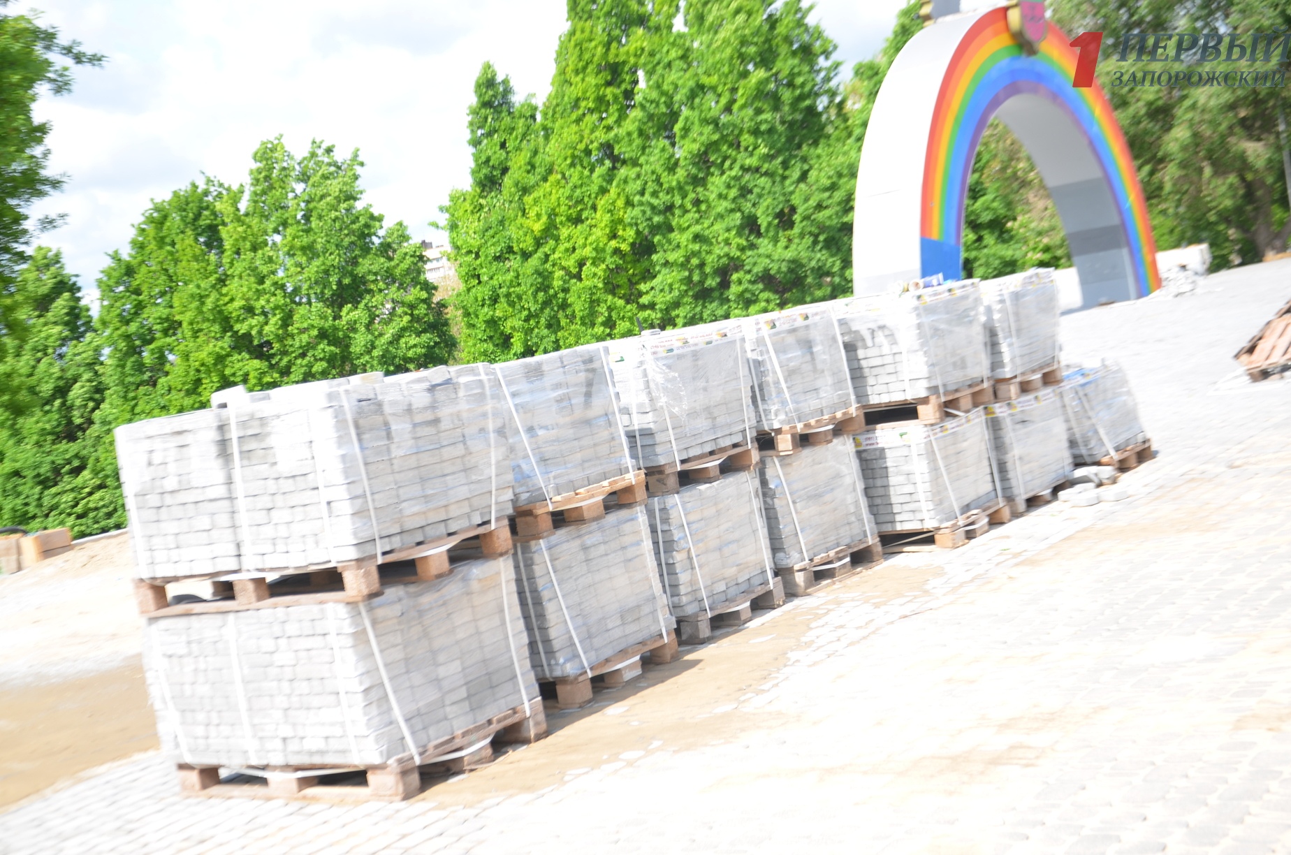 Около самого касакада фонтанов «Радуга», на участке где еще не расправились с брусчаткой, песок после обильного дождя весь смылся на асфальт. В планах работ подрядчик «Девелопмент энд Констракшн» после замены водопровода должен приступить к укладке плитки на центральной пешеходной части, благоустройству зеленых зон, высадке деревьев и кустарников, оборудование системы полива установке внешнего освещения и малых архитектурных форм – лавочек, урн. Сумма финансирования на 2019 год составляет 14,4 миллиона гривен.