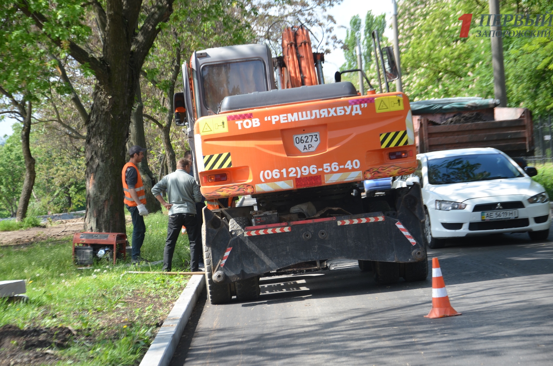 Данные работы проводятся в рамках четвертой очереди реконструкции проспекта Маяковского от улицы Патриотической до каскада фонтанов «Радуги». Ремонтом дороги и пешеходной части занимается фирма «Ремшляхбуд», которая выиграла в прошлом году тендер на проведение этих работ на сумму в 36,8 миллионов гривен. В настоящее время они завершают укладку плитки на площади перед каскадом «Фонтанов Радуга». Здесь уже отремонтировали саму дорогу с правой стороны и теперь занимаются обустройством ливневой канализации.