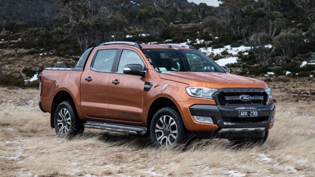 Полноприводные пикапы белого цвета Ford Ranger имеют дизельный двигатель объемом 2,2 литра и мощностью 160 л.с, 6 подушек безопасности, двух-зонный климат-контроль, кожаную обивку сидений, парктроник передний и задний, подогрев передних сидений, электрообогрев заднего и переднего стекла, аудиосистему на 6 динамиков, и тому подобное.