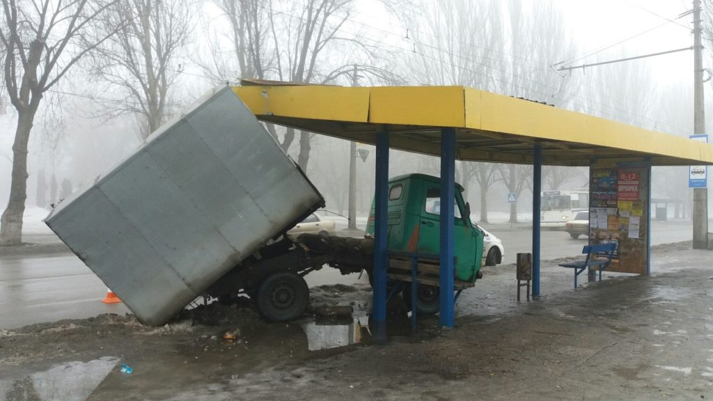 В Запорожье грузовик врезался в остановку общественного транспорта -ФОТО