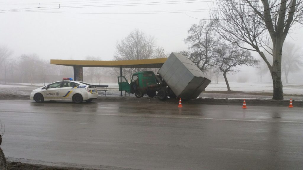 В Запорожье грузовик врезался в остановку общественного транспорта -ФОТО
