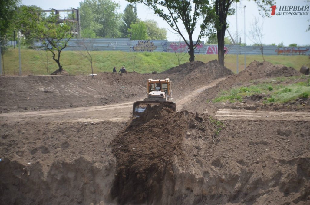 В Запорожье продолжается строительство нового парка на Набережной магистрали около каскада фонтанов «Радуга».