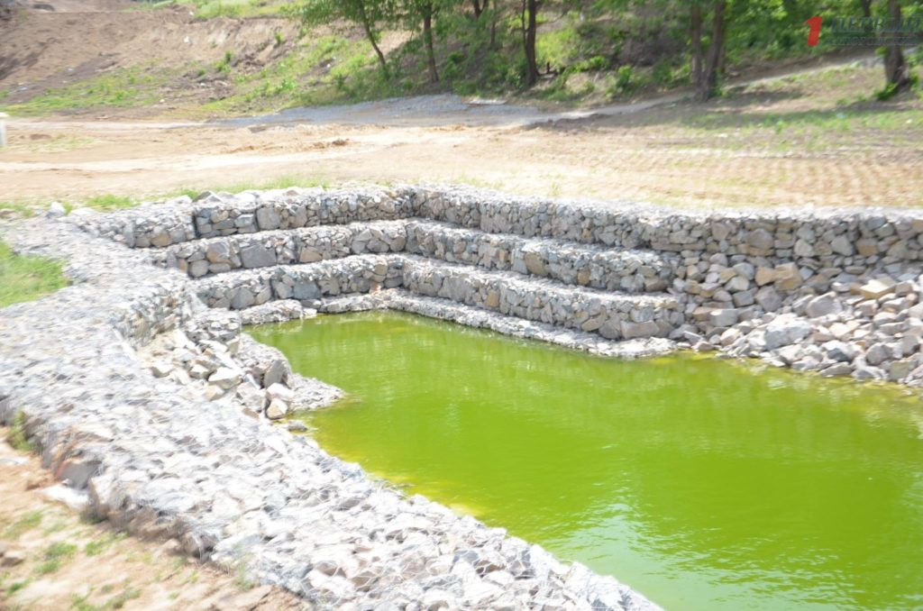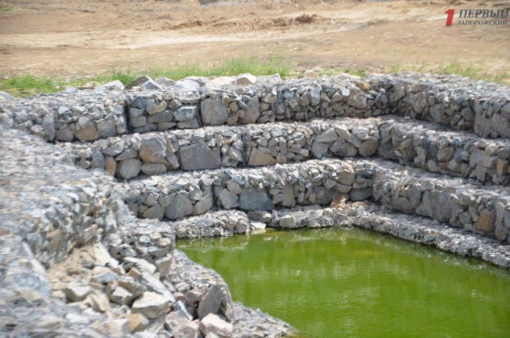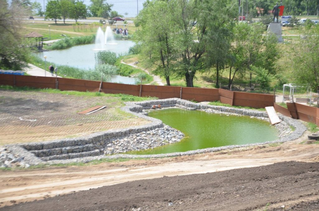 Первая часть работ согласно проекту уже завершена: подрядчики успели удалили аварийные деревья, установили дренажный коллектор и фильтрующие колодцы. Основная часть сил была задействована при строительстве искусственного озера с открытой экосистемой. Рабочие завершили его устройство. На сегодня озеро имеет угловатую форму, где поверх мембраны располагаются большие камни. Благодаря двум тробопроводам из водоема подпитываются два основных озера.