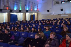 Директор областного центра патриотического воспитания молодежи Марина Шконда рассказала, что сегодня в кинозал пригласили молодежь, чтобы почтить память Героев Небесной Сотни.
