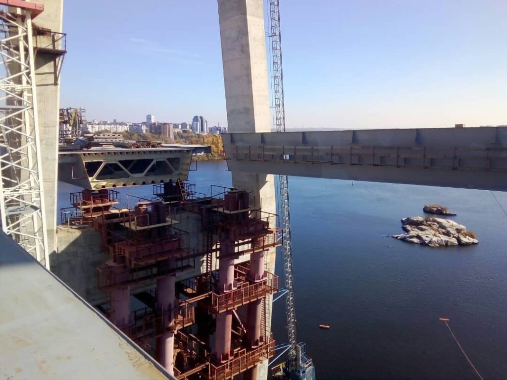 Вчера, 20 октября, в Запорожье установили третью секцию низовой ветви вантового моста.