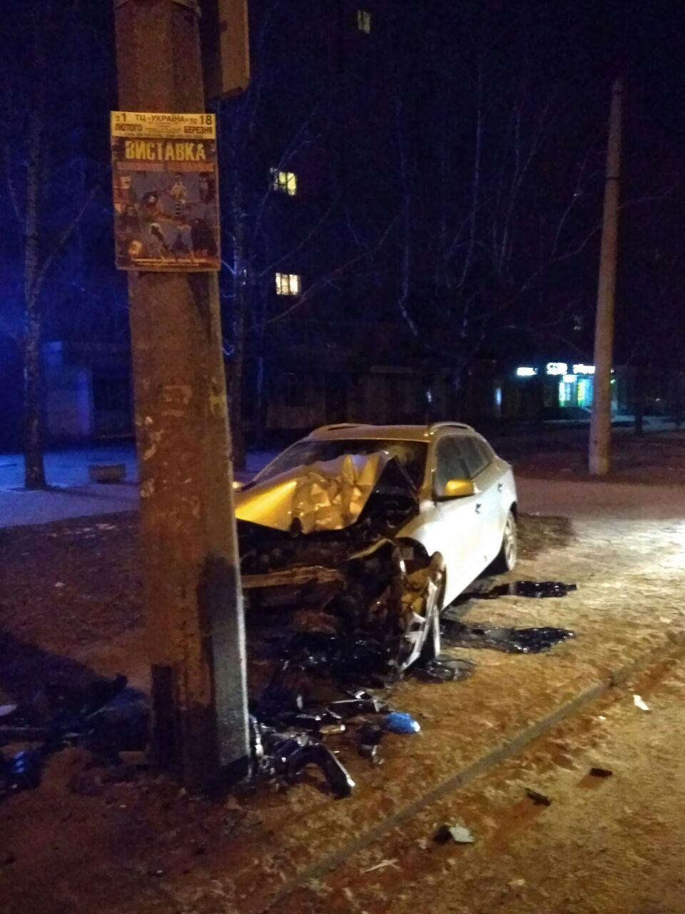 В Запорожье легковушка врезалась в столб: есть пострадавший - ФОТО