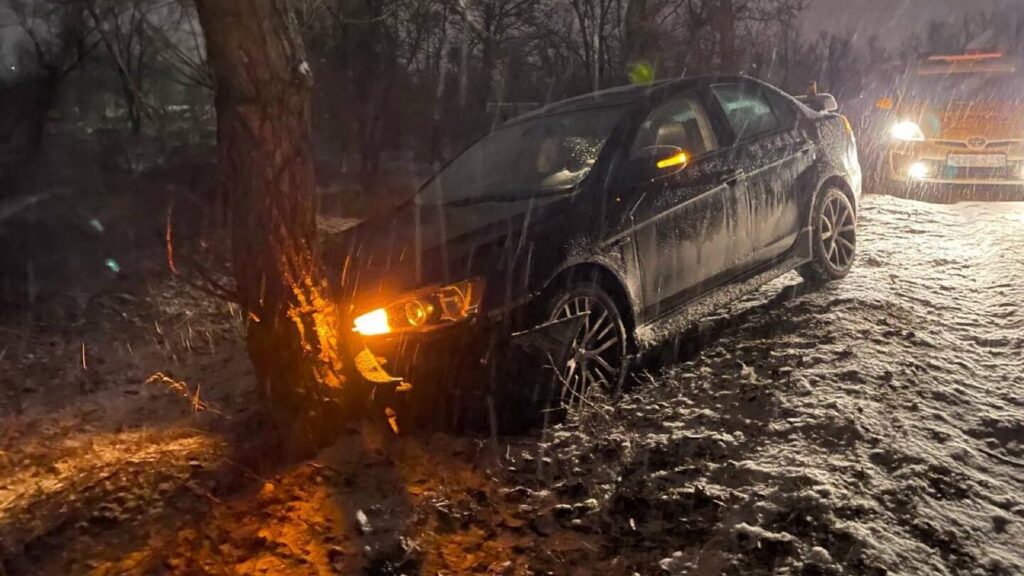 Вчера, 7 февраля, в Запорожье легковушка вылетела с дороги и врезалась в дерево.