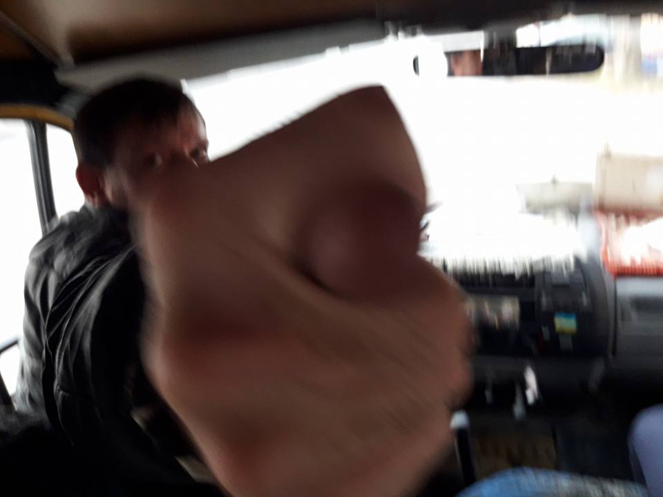 — В салоне был один льготник, который вышел на Вознесеновском рынке. На следующей остановке зашла женщина-льготник. Водитель в грубой форме потребовал с нее 5 грн. Я сказала ему что только что льготник вышел и место освободилось. После этого на меня обрушились ругательства. Водитель заявлял, мол кто я такая, что меня это не касается и далее по тексту. Когда я достала телефон чтобы его сфотографировать, он начал крутить мне дули, а затем бросился на меня с кулаками, выбил телефон и послал меня матом, — рассказала Наталья Заболотная на своей страничке в Facebook.
