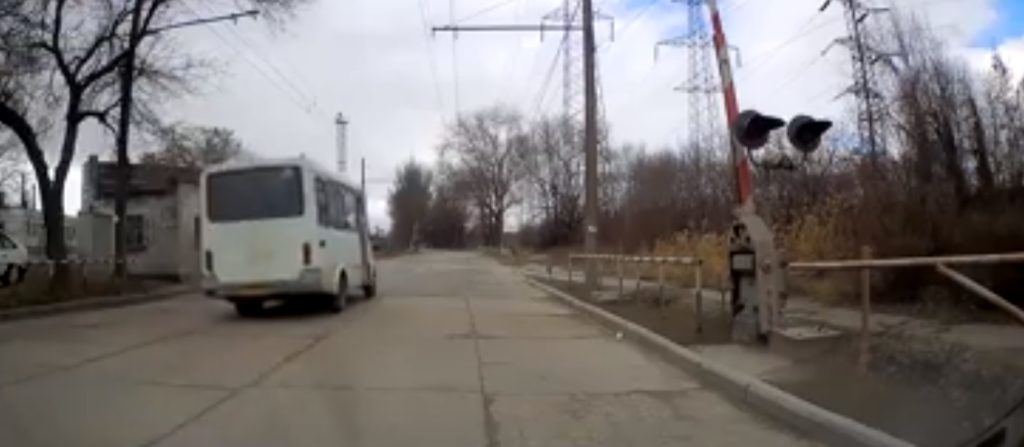 Так, водитель маршрутки проехал железнодорожного переезд на закрывающийся шлагбаум. Нарушение было задокументировано на видеорегистратор.