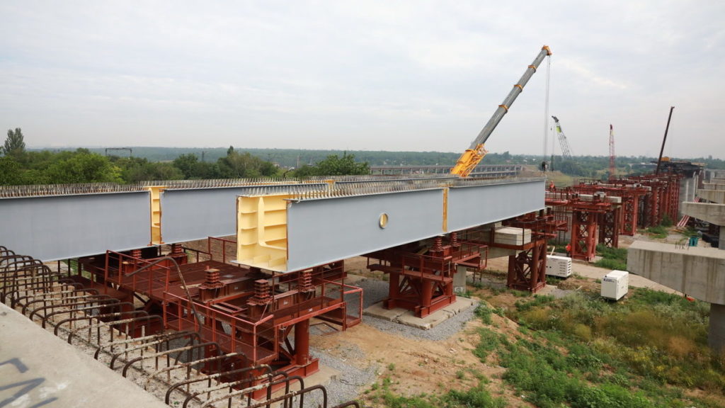 Работы на запорожском мосту возобновили в апреле. За 3 месяца подрядчик – турецкая компания «Онур» – выполнил подготовительные работы, построил строительный городок, асфальтобетонный узел и закупил металлические конструкции. Всего на строительстве потребуется 17 тысыя тонн металлических конструкций, все они закупаются у украинских производителей.