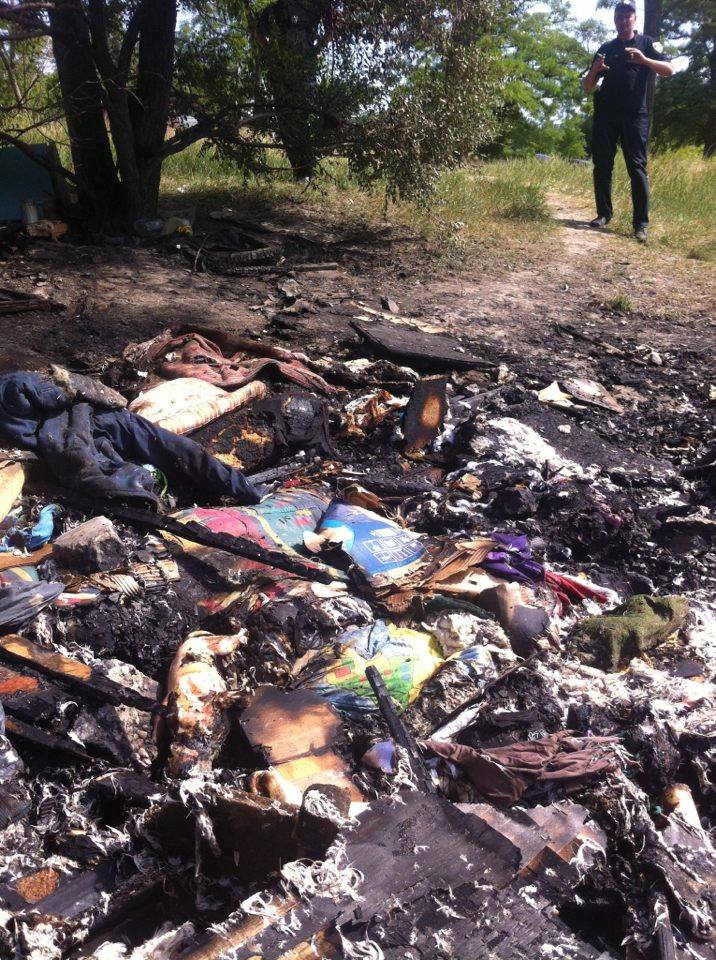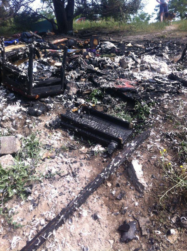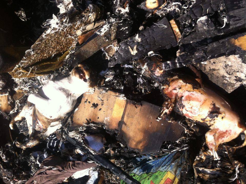 В один из последних визитов волонтеры уже не обнаружили маленьких питомцев. Будка, а рядом с ней все вещи были сожжены. В пепле можно было разглядеть останки щенков, которые погибли в огне живыми. Взрослым собакам удалось спастись.