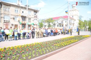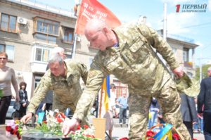 На митинг пришли ветераны и дети войны, студенты, школьники, военнослужащие, чиновники и просто неравнодушные запорожцы. Участники собрались на бульваре Шевченко около памятного знака «60 лет Победы».