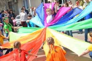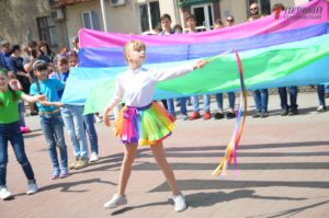 Все присутствующие почтили память погибших во время Второй мировой войны минутой молчания. Не обошлось и без тематических песен, декламации стихов и «радужных» танцев.