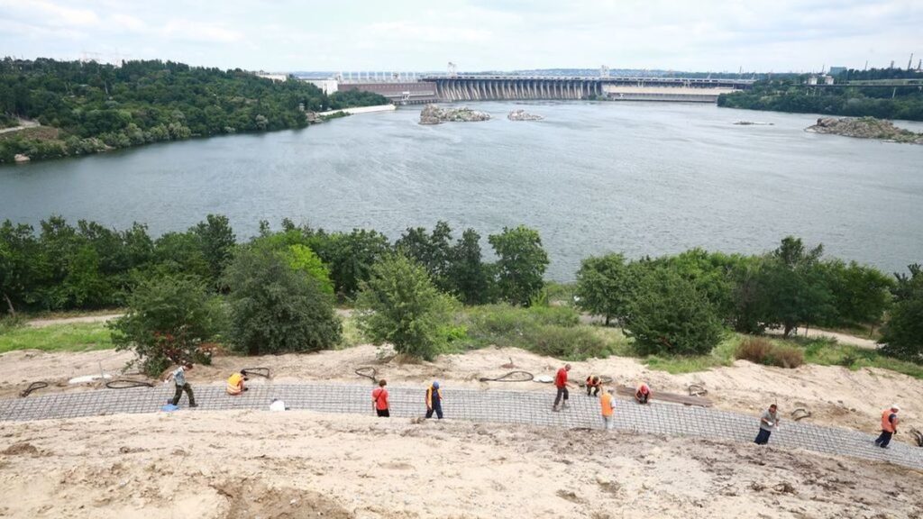 На острове Хортица на территории «Кургана Единства» проводится реконструкция объекта, которая должна быть завершена к празднованию Дня государственного флага и 30-летия Независимости Украины.
