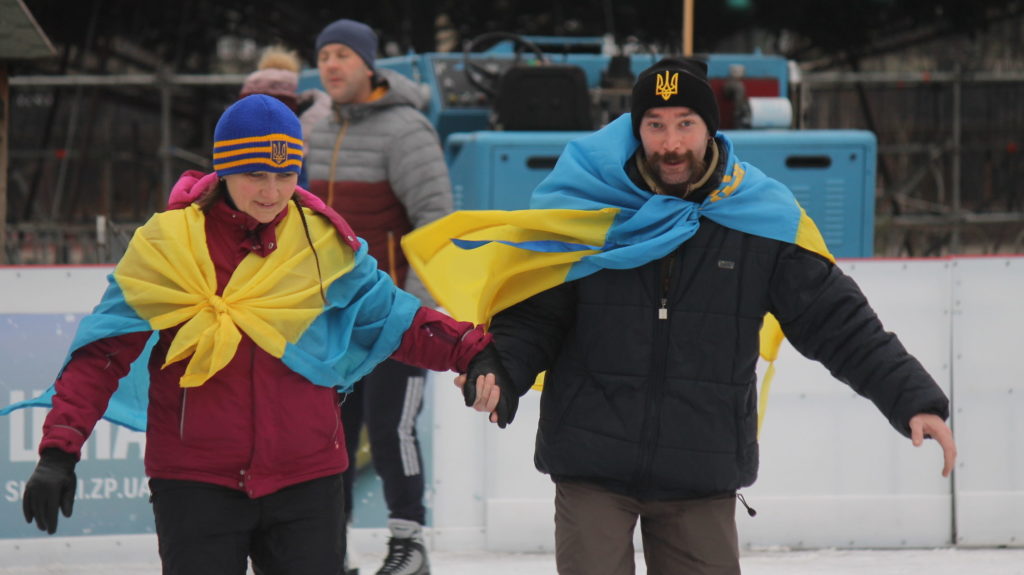 Сегодня на ледовом катке на площади Фестивальной отметили 101-ю годовщину провозглашения воссоединения Украинской и Западно-Украинской Народных республик.