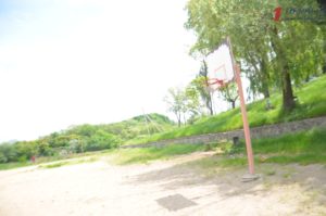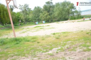 Сама пляжная зона довольно узкая, песка немного и часть утопает в сорняках. Пляжные инвентарь практически отсутствует: две выцвевшие раздевалки и облезлые баскетбольные кольца выглядят очень печально. Здесь нет никаких навесов от солнца и отдыхающие вынуждены спасаться от солнечных лучей под деревьями на траве.