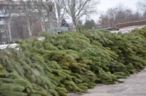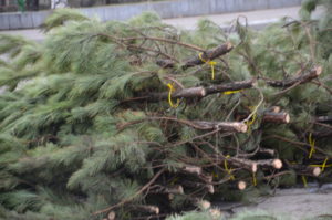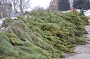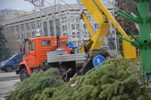 Для этих целей на площади Фестивальной работает специальный кран и около восьми сотрудников. Коммунальщики здесь же распиливают ветви, замеряют их длину и разделяют на этажности.