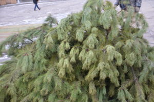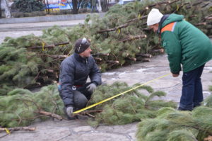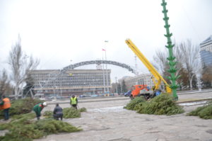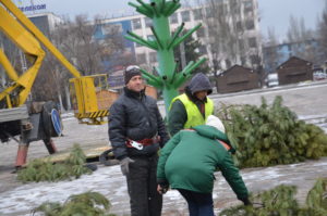 Сегодня, 7 декабря, сотрудники коммунального предприятия «Зеленхоз» приступили к насаживанию зеленых ветвей на металлический каркас елки.