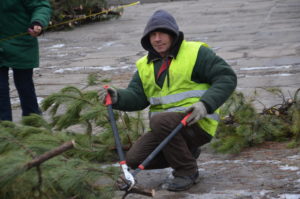 Всего же им предстоит закрепить ветви на двадцати блоках металлического каркаса весом в пять тонн. Кроме этого понадобится украсить ветвями также еще восемь маленьких елок, которые расположены по периметру площади.