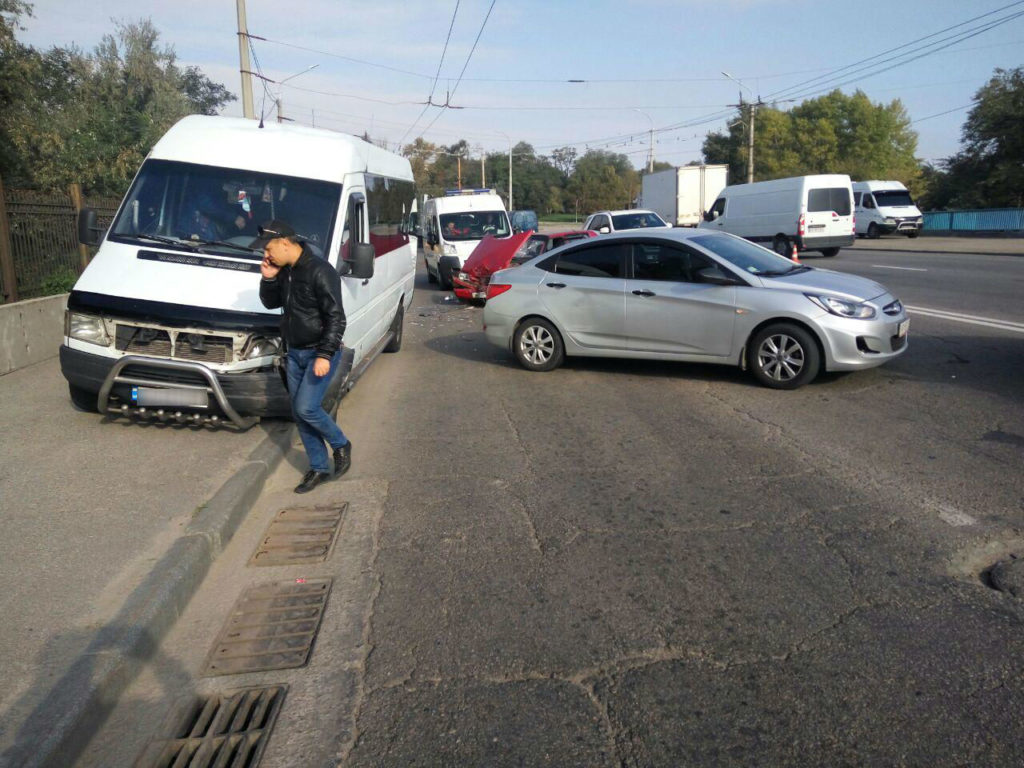 Как рассказали в пресс-службе патрульной полиции, дорогу не поделили авто «Славута», «Hundai» и маршрутка №61. Из-за аварии на плотине образовалась пробка.