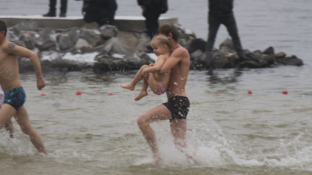 С каждый годом празднование Крещения на Правобережном пляже становится все более массовым. В этом году не помешала и масштабная реконструкция более протяженной части пляжа, которая несколько ограничила возмозможность искупаться для большего количества народа.