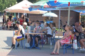 Кроме основной программы для гостей и участников мероприятия организована конкурсная программа. Каждый желающий может продемонстрировать свое умение в слем-данках и трехочковых бросках. Лучший конкурсант также получит денежное вознаграждение. При этом, болельщики не спешат выходить на площадку и прячутся от жаркого солнца в тени.