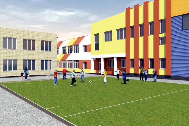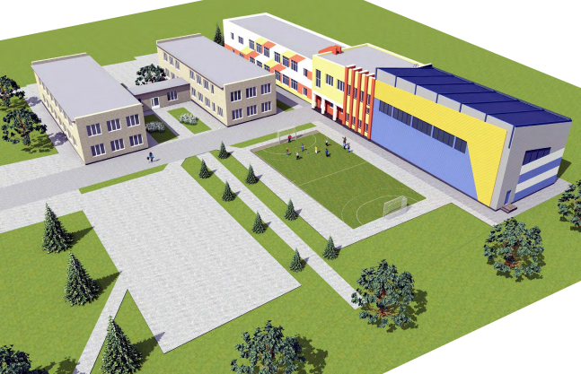 Проектом предусмотрено строительство блока начальной школы в два этажа и спортивных залов на свободной от застройки территории, а также реконструкция котельной.